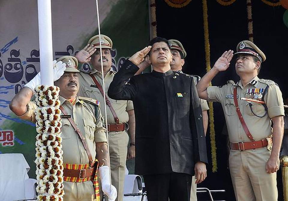 District Collector K Bhaskar unfurled the national flag and took the salute at the parade contingents.